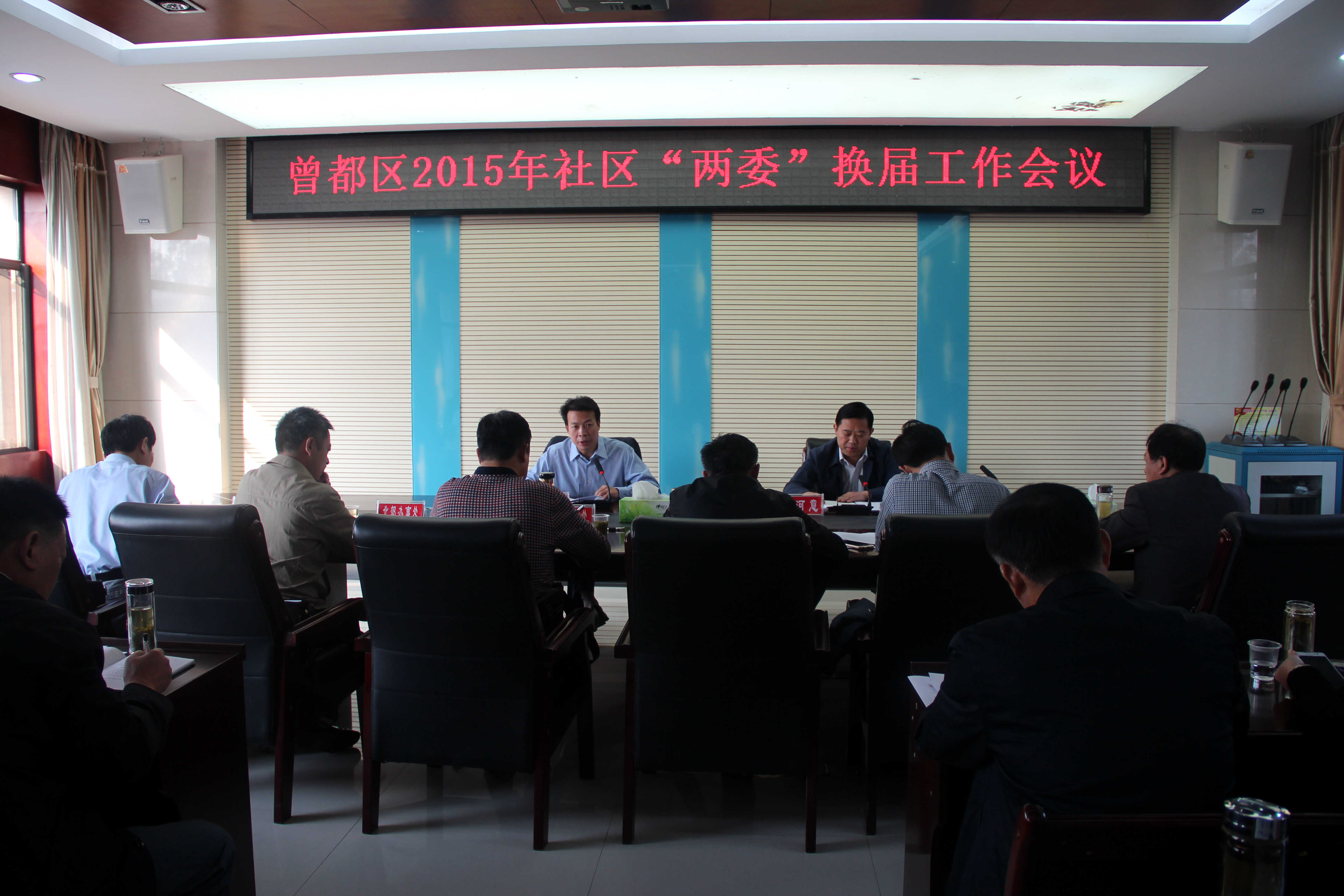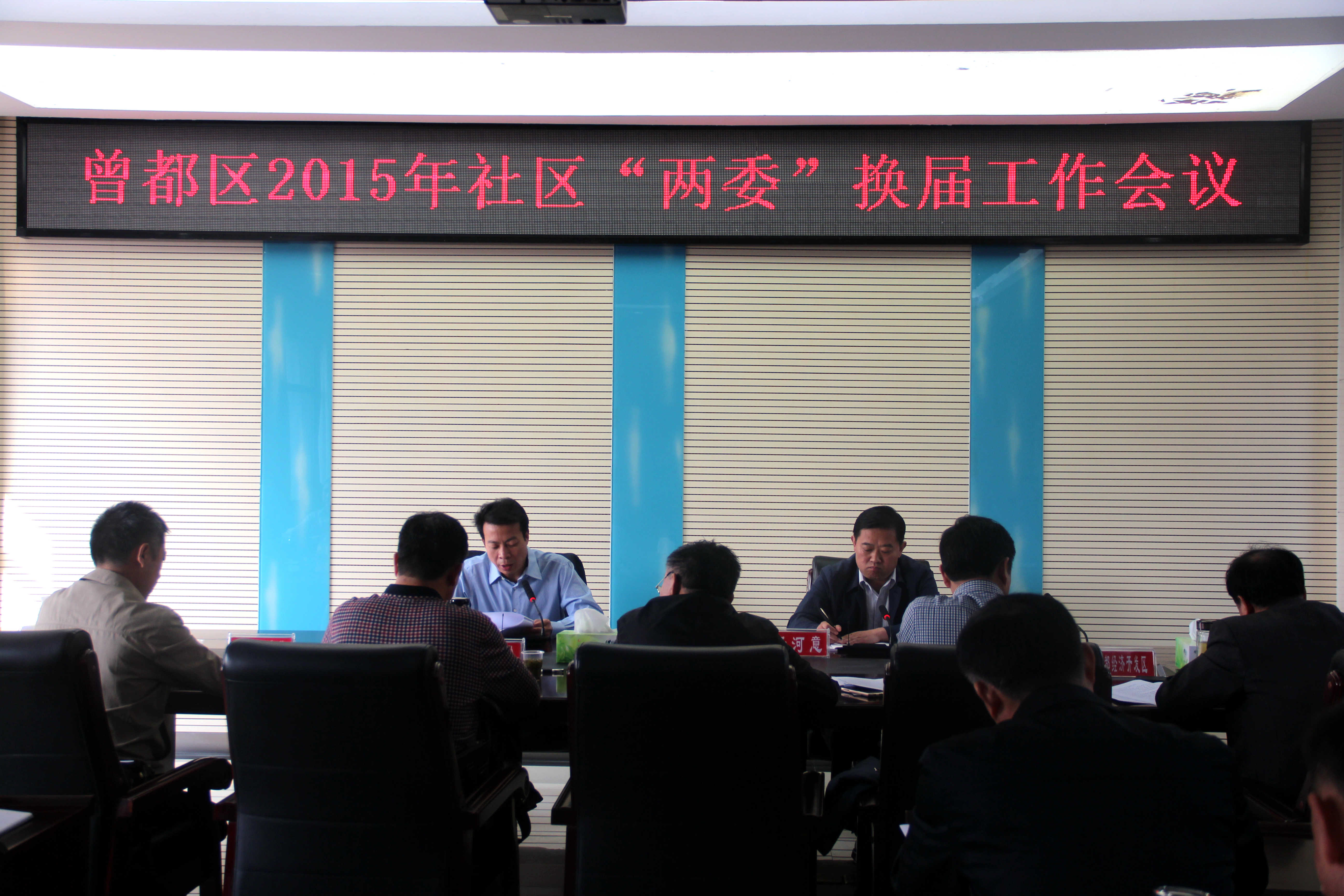2015年10月16日,曾都区召开2015年社区“两委”换届工作会。区委书记刘宏业出席并讲话,区委副书记杨河意主持会议。区社区“两委”换届选举工作领导小组全体成员、各办事处、管委会党工委书记、组织委员、分管民政工作的副主任、民政办主任参加会议。